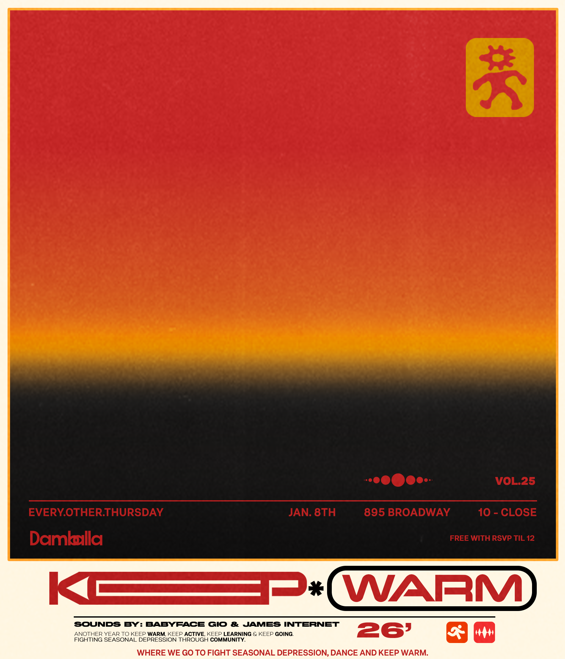Keep*WARM is a brand and party dedicated to curating an atmosphere of warmth through music, movement, and connection. Rooted in community, it now extends beyond the dance floor bringing its values into group activities, workshop classes, and creative gatherings that inspire learning and collaboration. Keep*WARM remains a space to unwind, grow, and connect through shared energy, soulful expression, and the freedom to simply feel good